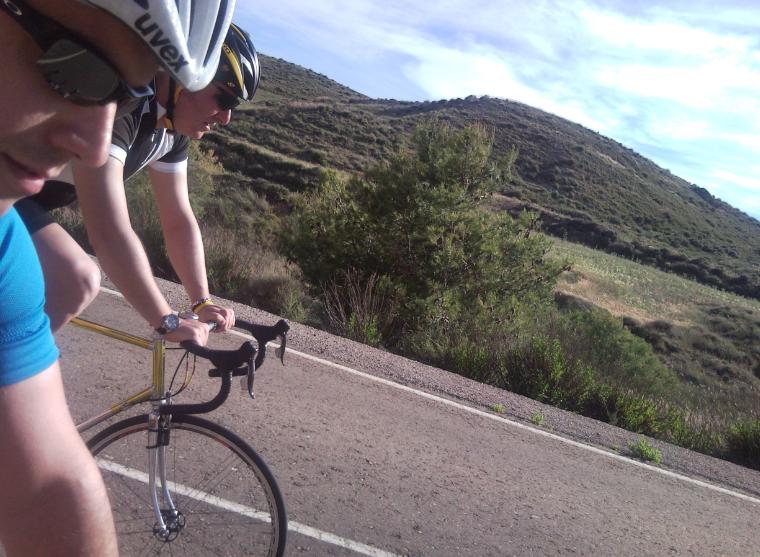 Tal señor, tras hacer una diagonal que cruzaba los 4 carriles de la Fuente de la Junquera (sin intermitente... que debía ser un extra que no pagó el día de la adquisición del carro), se coloca detrás nuestro jurando en todo menos en cristiano, porque dos ciclistas iban por su carril y giraban siguiendo su trayectoria hacia la carretera de Valencia. Este individuo que casi embiste a mi compañero de andanzas y que ha hecho todo lo posible por pasarle bien "cerquica" se me queda mirando con una amplia carcajada en el semáforo diciéndome que "todos los ciclistas somos unos inútiles!" y que "si no llevamos intermitentes qué coño hacemos"...